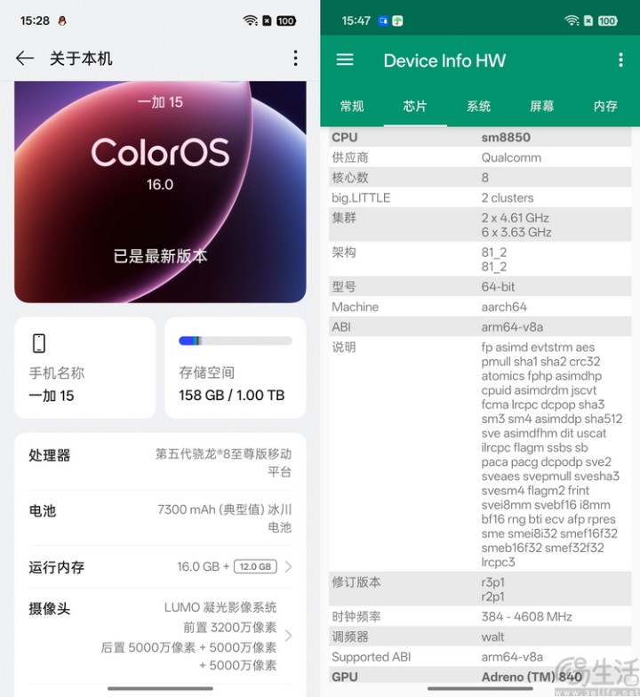 到了一加15上,一方面它同样搭载第五代骁龙8至尊版,并搭配10667MHz等效频率的LPDDR5X Ultra内存,以及UFS4.1闪存的存储组合。
