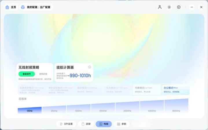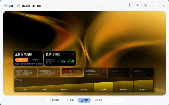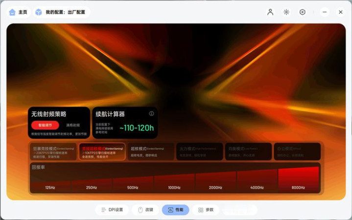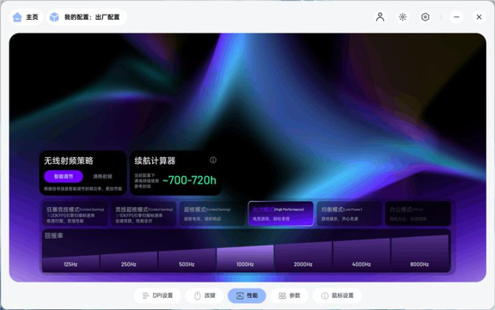 在性能最强的狂暴竞技模式下,将无限射频策略也设置为满格射频,雷柏VT7金属漆鼠标也可以保证75小时左右的续航。