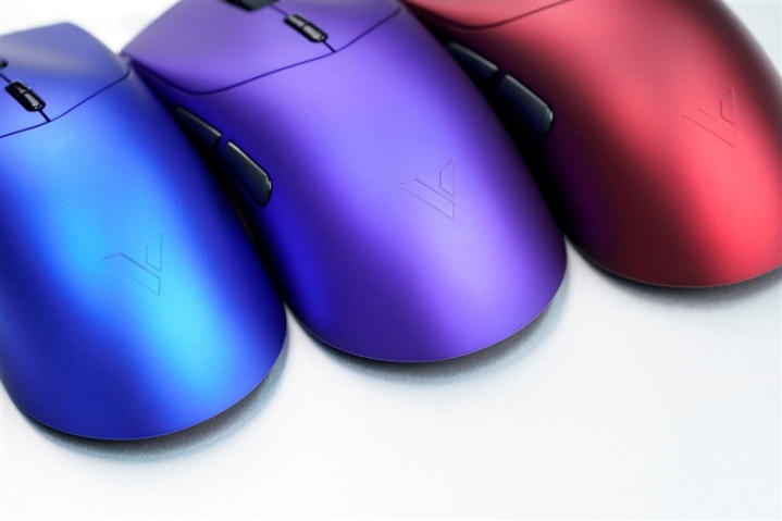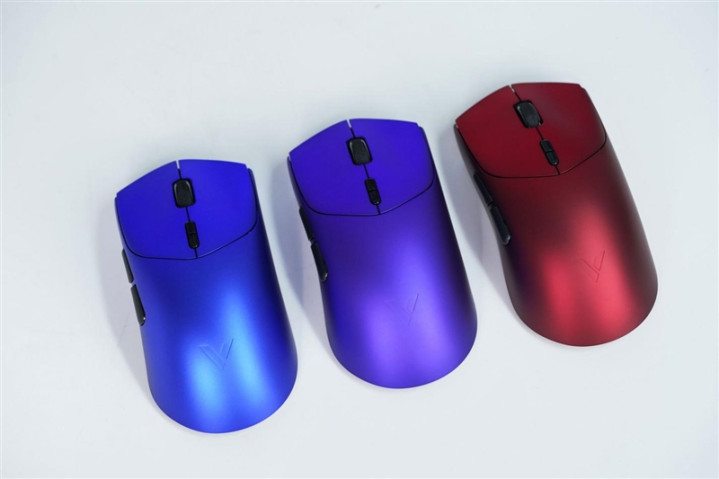雷柏VT7金属漆鼠标的新的夜光蓝、魅影紫和缎绯红在A-Hub上的显示效果。