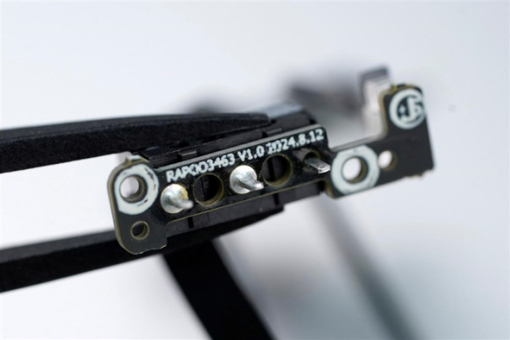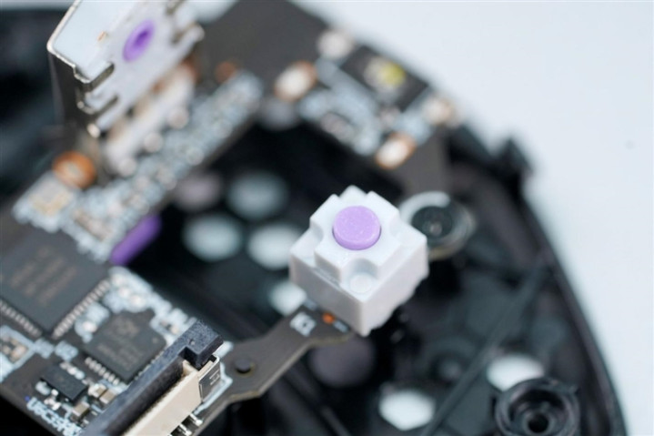 雷柏VT7金属漆鼠标滚轮组件使用定制的长寿命紫色编码器和微动开关。