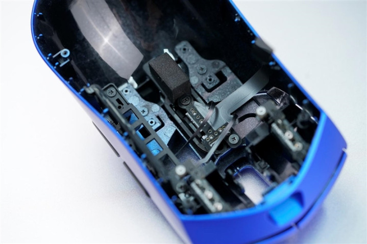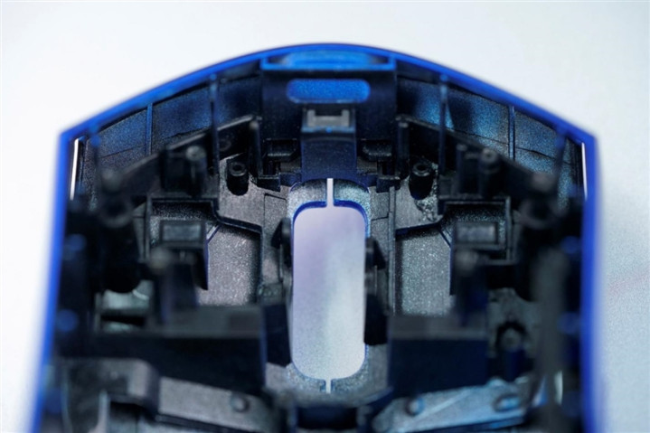 这里可以看到雷柏VT7金属漆鼠标上盖精细的模具,左右键的限位装置既保证了按键手感的统一,也可以防止意外被掰开损坏。
