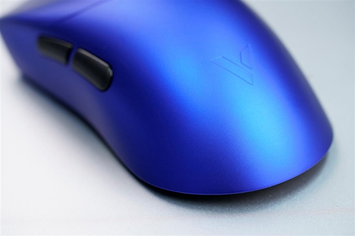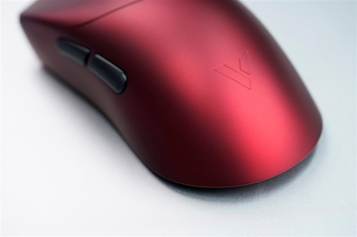 亲肤防滑涂层并没有遮挡VT7金属漆鼠标表面的独特质感,在鼠标的流畅曲面上呈现出一种流动的光泽,光线下金属漆表面会有更非丰富的色彩明暗变化,金属质感强烈。